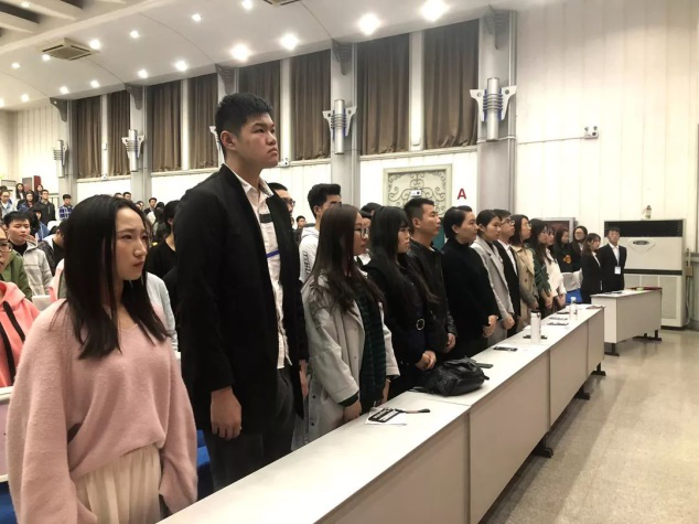 团委书记仉雅琼、辅导员弭力元、王保义老师出席了本次活动,同时球盟会各员工组织主要员工干部,2018级全体员工共同参加了本次团校开班仪式。